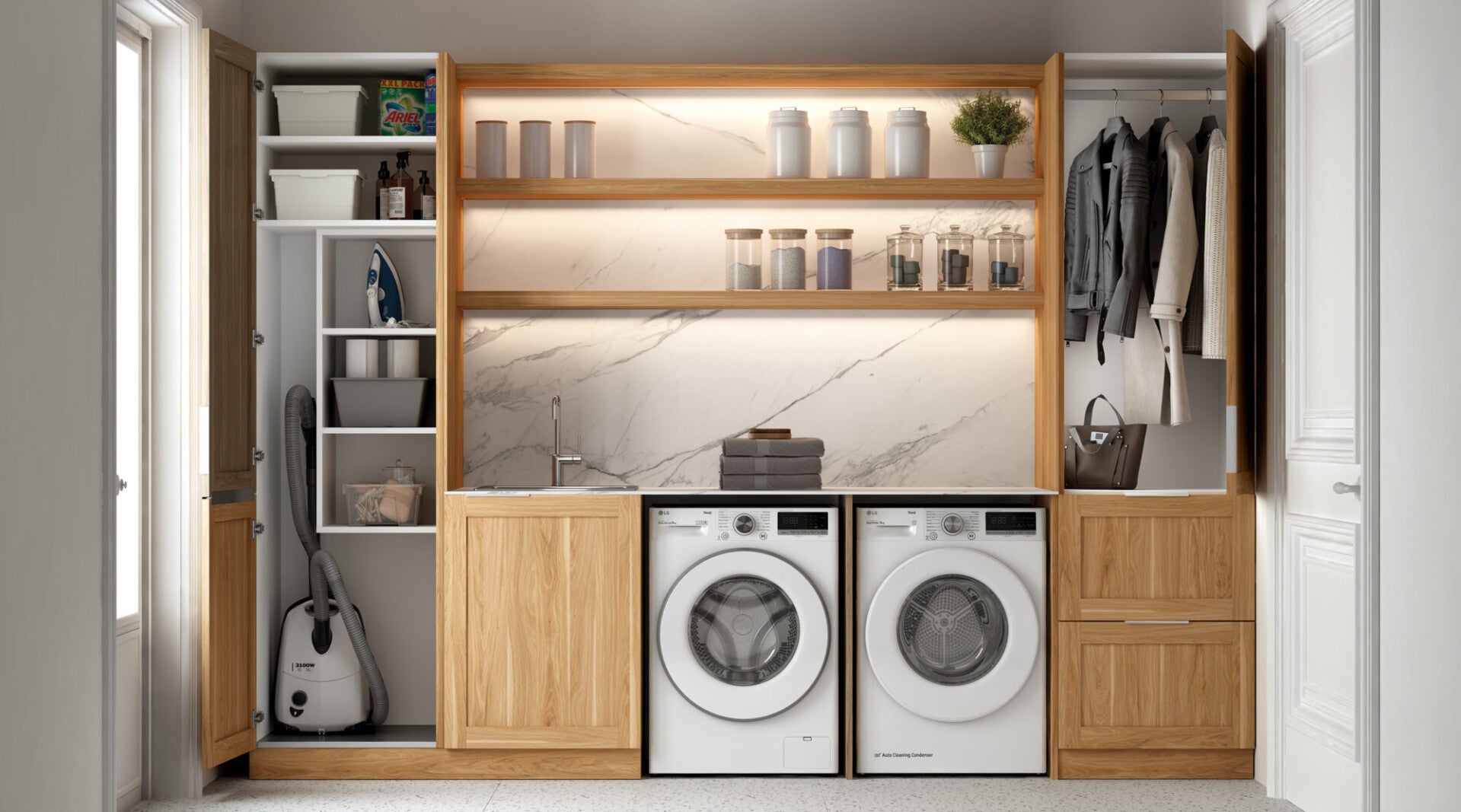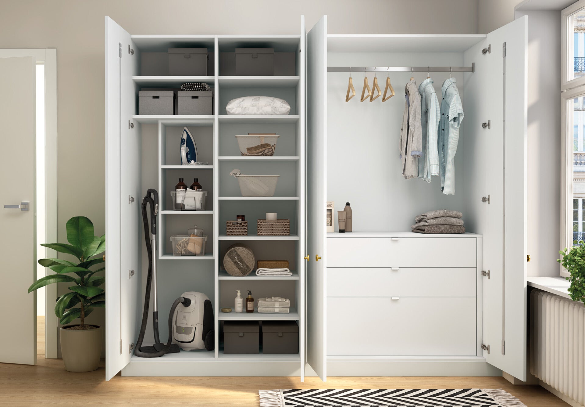 Muchos de los espacios auxiliares pueden resolverse con la misma lógica modular que una cocina: estructuras, frentes, herrajes, interiores, sistemas de apertura y acabados. Eso permite trasladar al resto de la vivienda un nivel de rigor mayor, tanto en composición como en comportamiento del producto.