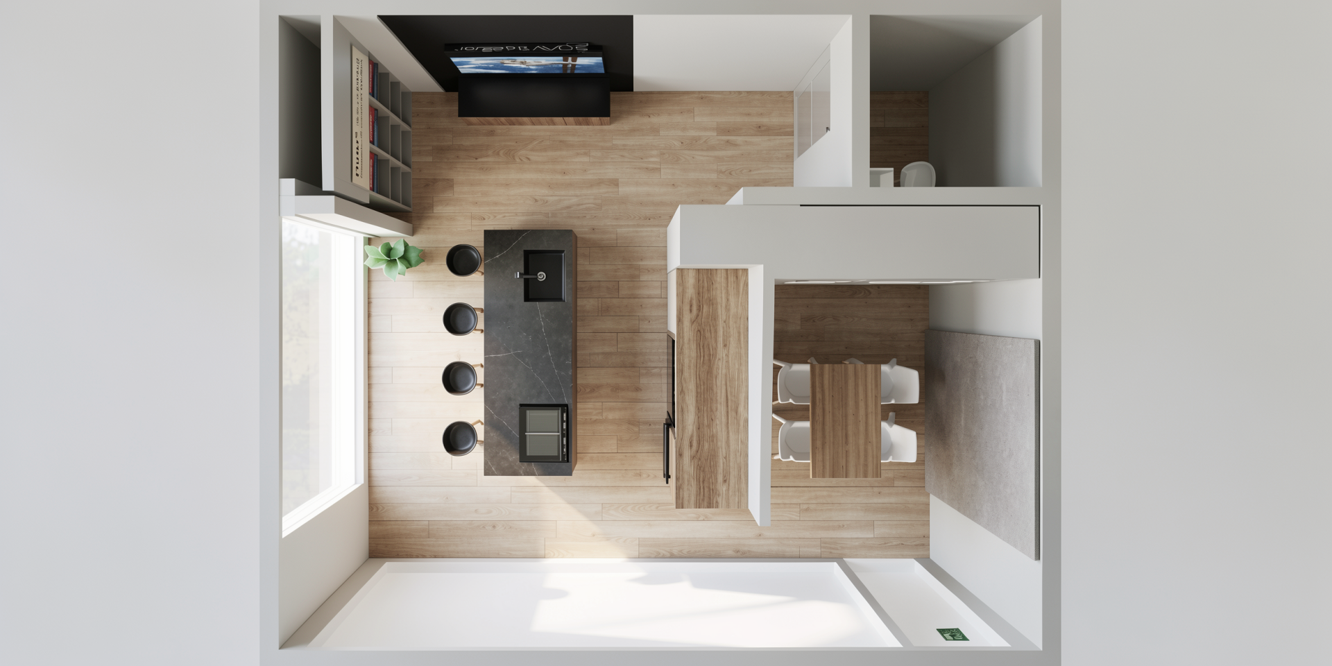 El showroom incluye una zona de reuniones y presentación de proyectos, pensada para trabajar cada propuesta con calma.